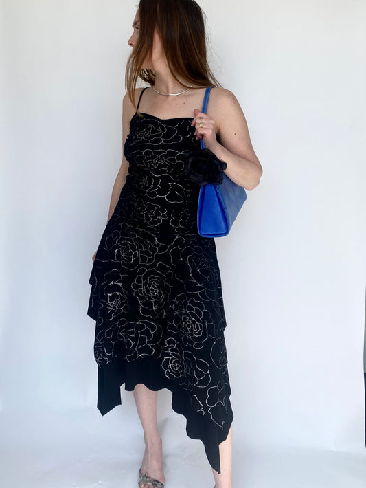 handkerchief hemline flower glitter dress