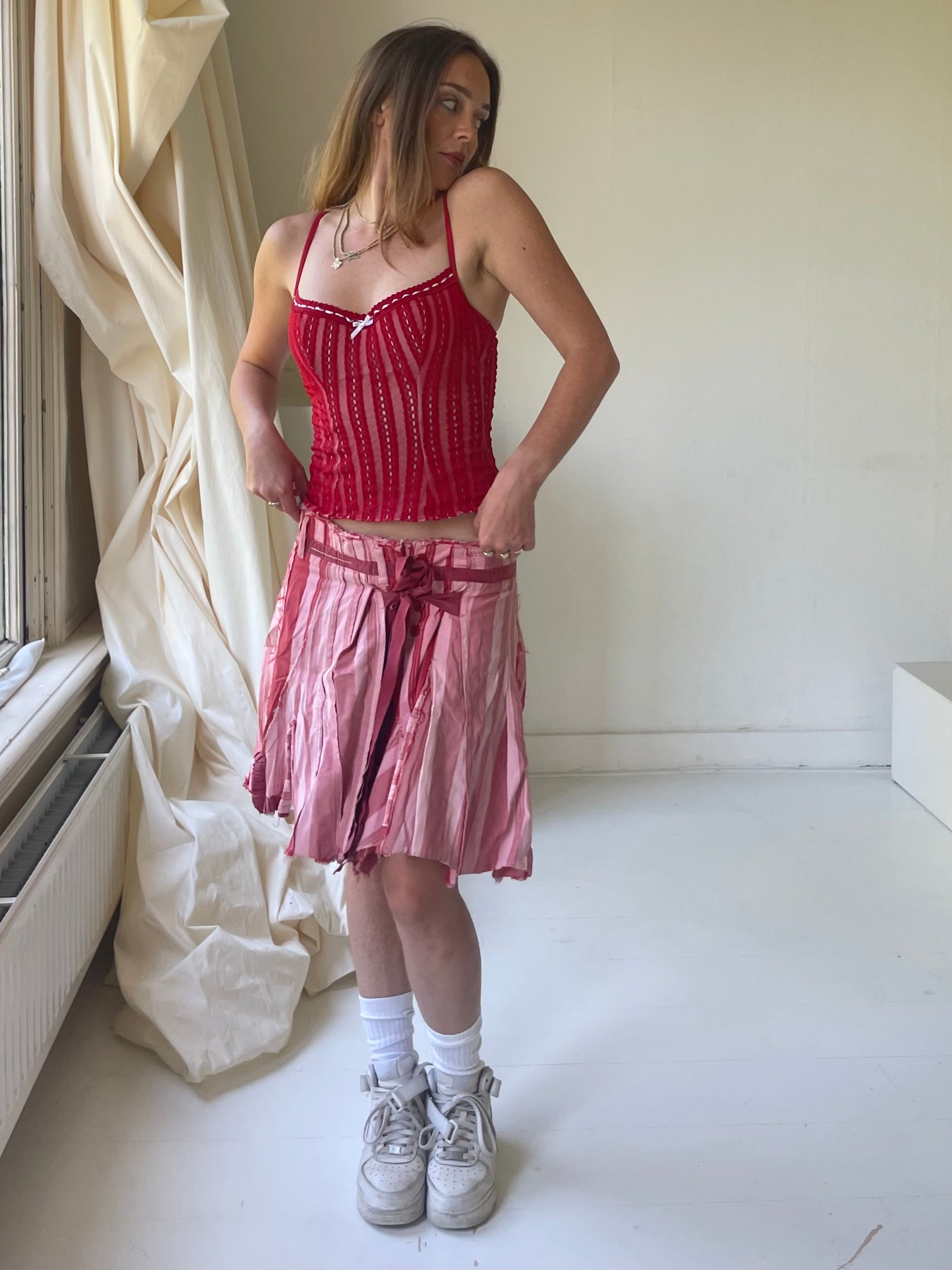This skirt encapsulates early 2000s avant-garde streetwear, perfect for those who collect rare designer pieces or want to channel a bold, off-beat feminine energy. Wear it with a tucked-in mesh top and boots for a cinematic silhouette – or pair it with a loose tee for a nonchalant, artsy vibe. “Le Jean de Marithé + François Girbaud” vintage unstructured mini skirt from the 2000s / Y2K.